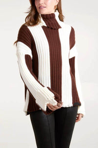 Women's Patchwork Turtleneck Long-sleeved Sweater
